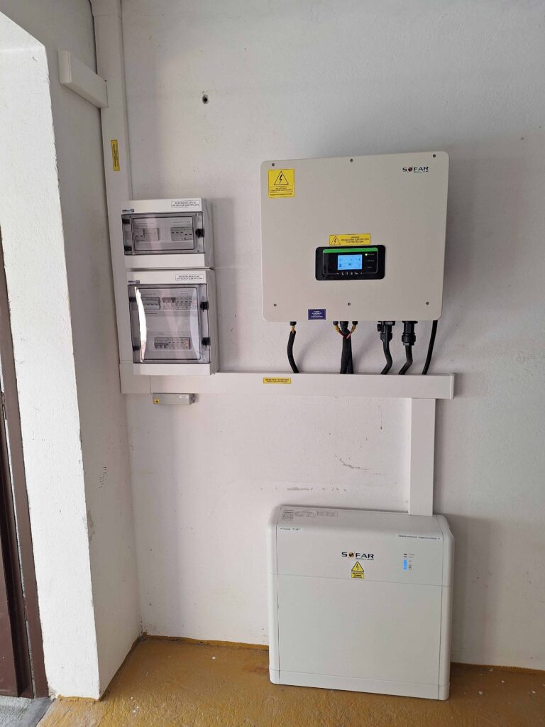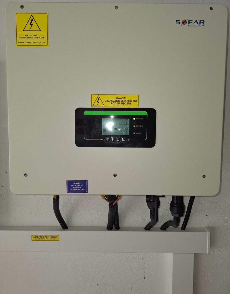 W skład naszych prac elektrycznych został podłączony Falownik hybrydowy Sofar oraz magazyn 5.kWh również tej marki.